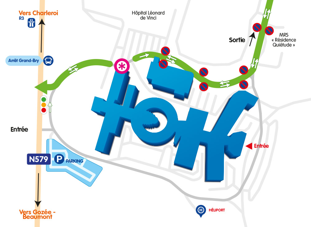 - Pour sortir du site Vésale : la circulation sera déviée vers la rue des Pinsons, la place de France et la rue du Rond-Point, ainsi que par la rue des Fauvettes et du Chêne Bonnet.