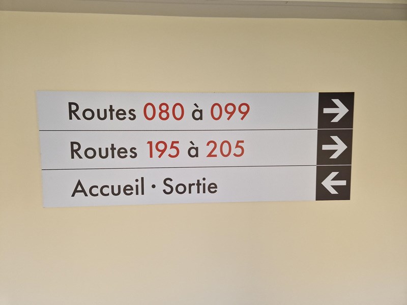Chaque local est désormais considéré comme une destination unique et se voit attribuer un nombre de trois chiffres. Le premier correspond automatiquement à l'étage. Ex : la route 506 vous mènera au 5e étage, au local 506.
