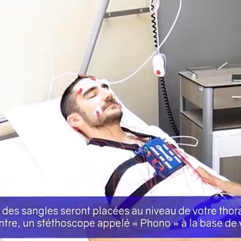 La polysomnographie est un examen non douloureux et non invasif qui enregistre de nombreux paramètres comme l’électro-encéphalogramme, le ronflement, la fréquence cardiaque, les mouvements respiratoires, la saturation du sang en oxygène, la position et stades du sommeil etc.