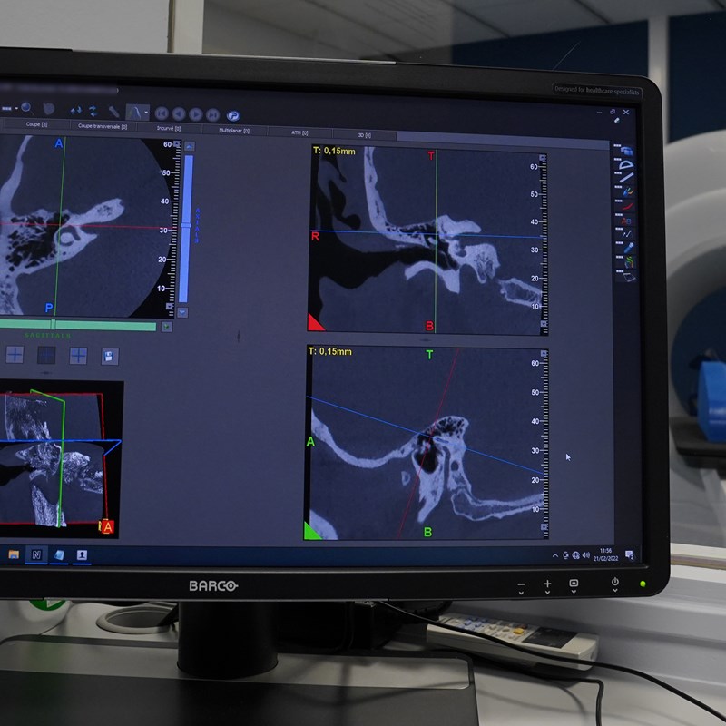 Le Cone Beam CT est utilisé pour les examens des sinus, rochers, maxillaire supérieur et/ou mandibule, massif facial, genoux, pieds, chevilles, mains, poignets et coudes avec une précision plus importante qu'un scanner et une vision en 2D et 3D de très haute qualité. Il délivre en outre jusqu'à 10 fois moins de doses de rayons X qu'un scanner classique tout en bénéficiant d'une meilleure résolution spatiale. Il est cependant nettement plus performant pour l'analyse des structures osseuses que pour l'étude des tissus dits "mous" (muscle, cerveau, organes internes) pour lesquels la tomodensitométrie garde l'avantage.