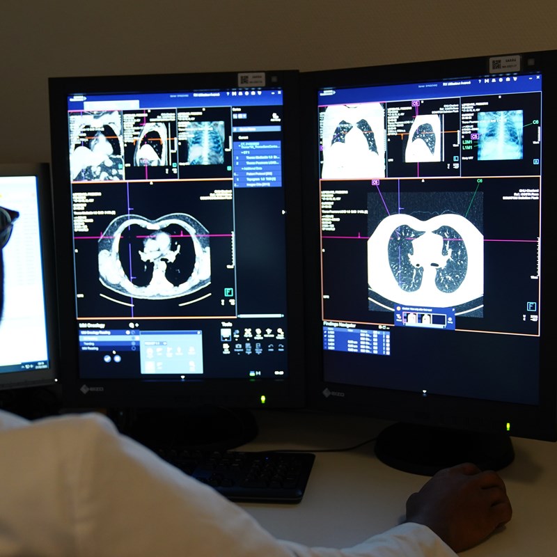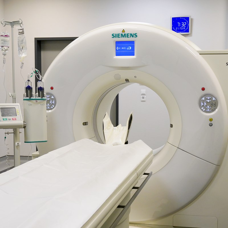 Le scanner permet d’explorer l’ensemble du corps humain en un temps très court et d’en reconstruire des images en 3D. Il s’agit d’une technique basée sur l’utilisation des rayons X parmi les plus utilisées permettant des diagnostics très précis car elle permet de voir tous les tissus comme l’os, le poumon, le cerveau, etc avec une résolution élevée. Nos installations modernes sont de moins en moins irradiantes grâce à de multiples logiciels et techniques d'optimisation des doses.