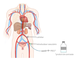 - La réalisation d’images projetées sur un écran de télévision devant l’opérateur grâce à l’injection d’un produit de contraste iodé via le cathéter. Lors de l’injection de ce produit, vous pourrez ressentir une sensation de chaleur transitoire, liée au passage du produit dans vos artères.