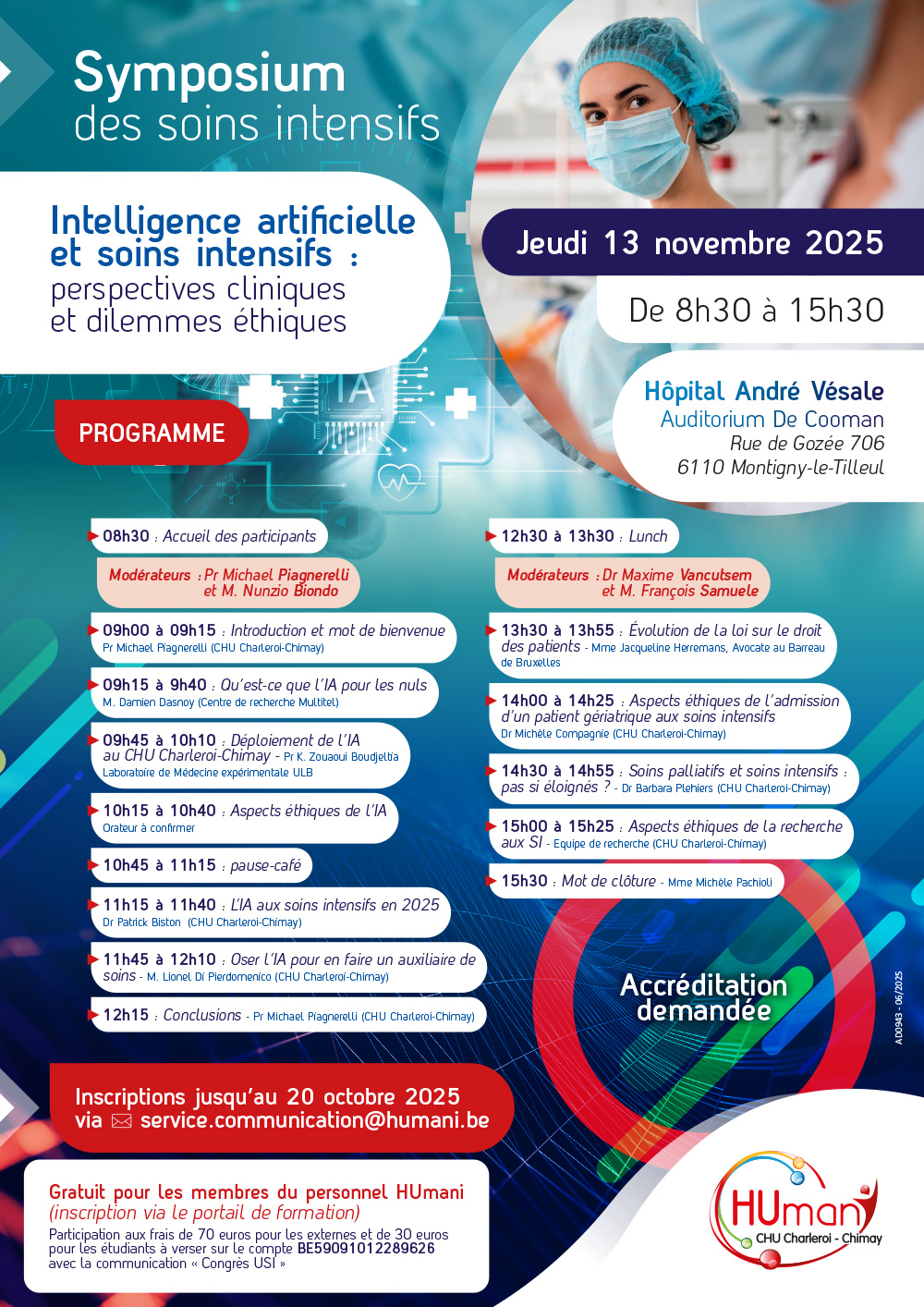 13 novembre 2025 : Symposium "Intelligence artificielle et soins intensifs"